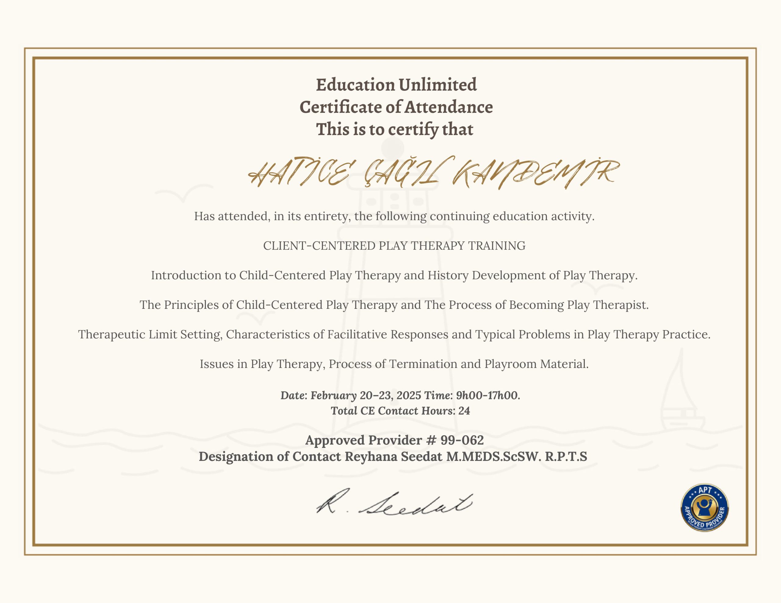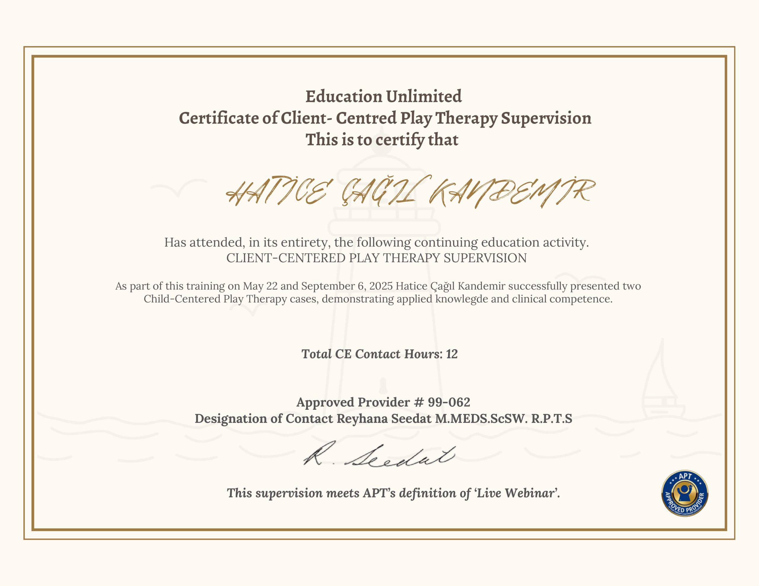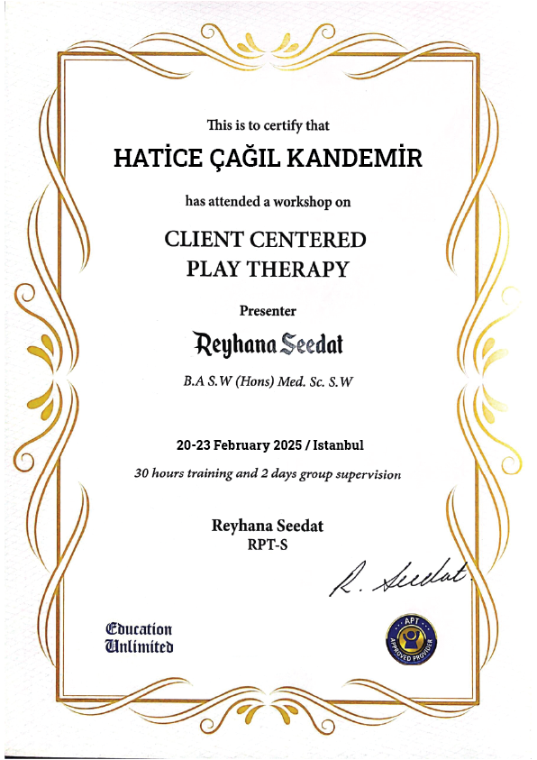 Mesleki eğitimlere ve süpervizyonlara düzenli olarak katılarak bilgilerimi güncel tutarım.